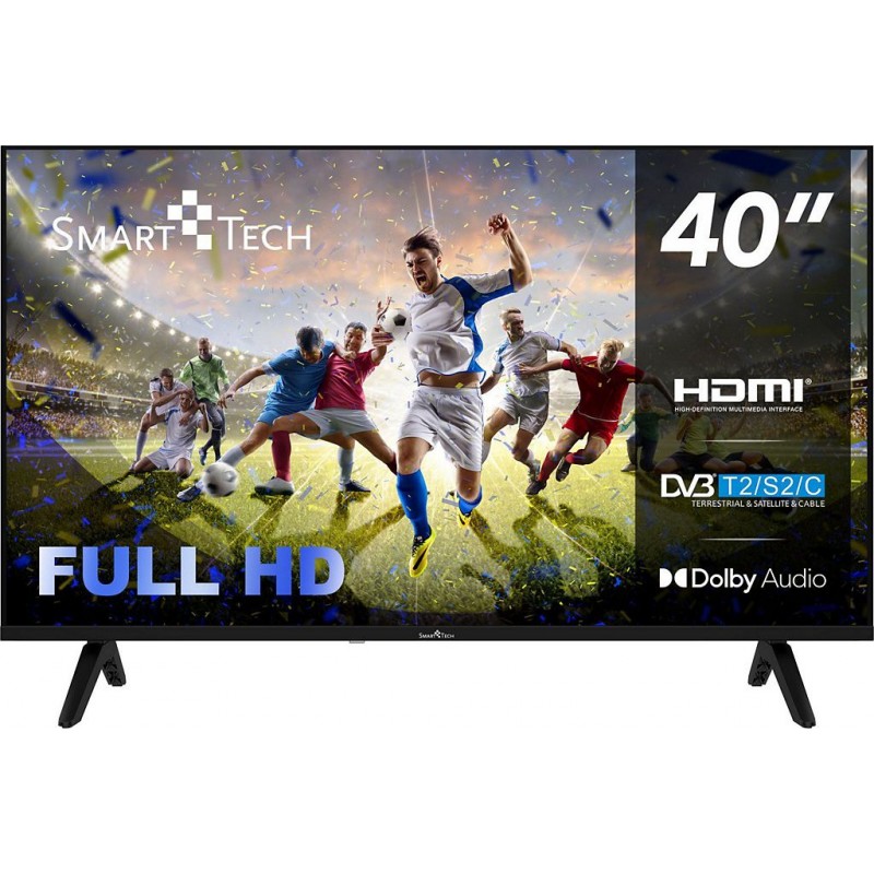 Téléviseur non connecté Smart Tech 40 pouces (101cm), téléviseur LED FHD 40FN01K, 60 Hz Résolution 1920*1080 3HDMI, 2 USB CI Dolby audio Compatible support mural: vesa 200*100. Produit neuf dans son emballage d'origine bénéficiant de la garantie originale du fabricant. EAN 5999862972219.