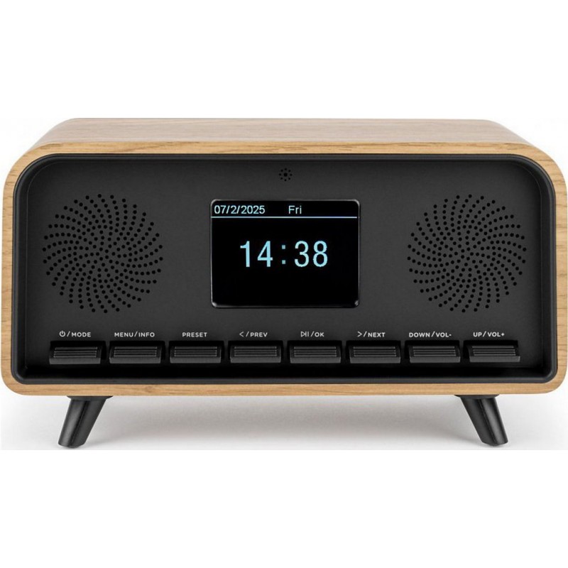 Plongez dans l’élégance rétro avec une technologie moderne! Découvrez notre radio vintage DAB & FM, alliant le charme du passé à la clarté numérique du présent. Profitez d’un son cristallin grâce à son enceinte Bluetooth intégrée, vous permettant de diffuser vos playlists préférées sans fil. Son écran LCD avec dimmer affiche les informations essentielles en un coup d&-39 œil, tandis que la fonction autoscan et la mémoire de 50 stations vous assurent un accès rapide à vos radios favorites.--Réveillez-vous en douceur avec son réveil double alarme et connectez vos appareils via l’entrée AUX-IN 3.5 mm. Un bijou rétro aux performances d’aujourd’hui! Points forts Enceinte Bluetooth 5.3 Écran LCD avec intensité réglable Radio DAB & FM avec Autoscan 50 stations mémorisables Télécommande (piles 2xAAA non incluses) AUX-IN 3.5 mm Double alarme avec volume réglable Antenne télescopique Lecteur USB (MP3) Puissance musicale totale 30W Fonctionne sur secteur 230 V (9V 2A inclus). Produit neuf dans son emballage d'origine bénéficiant de la garantie originale du fabricant. EAN 3499550389708.